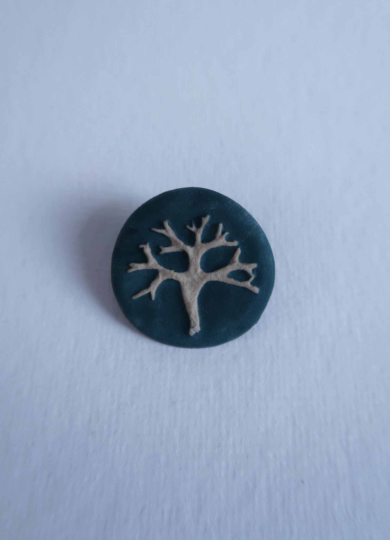 This somewhat sober round brooch has a bar-relief of a pretty great piece of lichen.