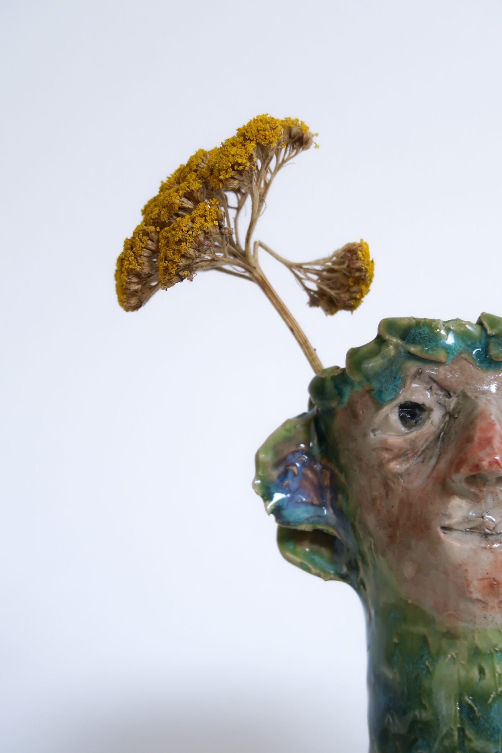 Here’s a vase for small wildflower compositions. Won’t feel empty or in any way lacking even in the depths of winter, with a few dead fruit flies for company. She has an undeniable presence and is possibly too canny for her own good, always noticing things, drawing conclusions, and giving frustratingly sound advice.