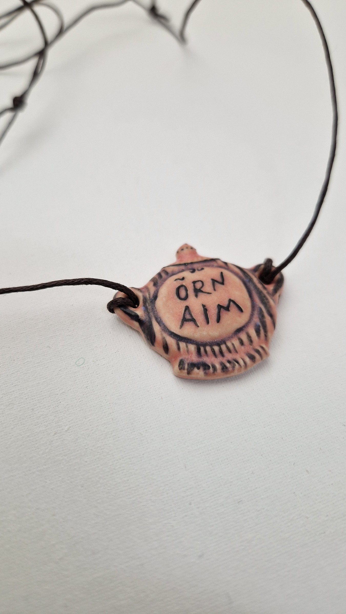 Et meil kõigil oleks igal hetkel kasvõi see kõige õrnem aim. Keraamiline kee, küljes vahatatud puuvillast reguleeritava pikkusega pael. 30 x 33 mm